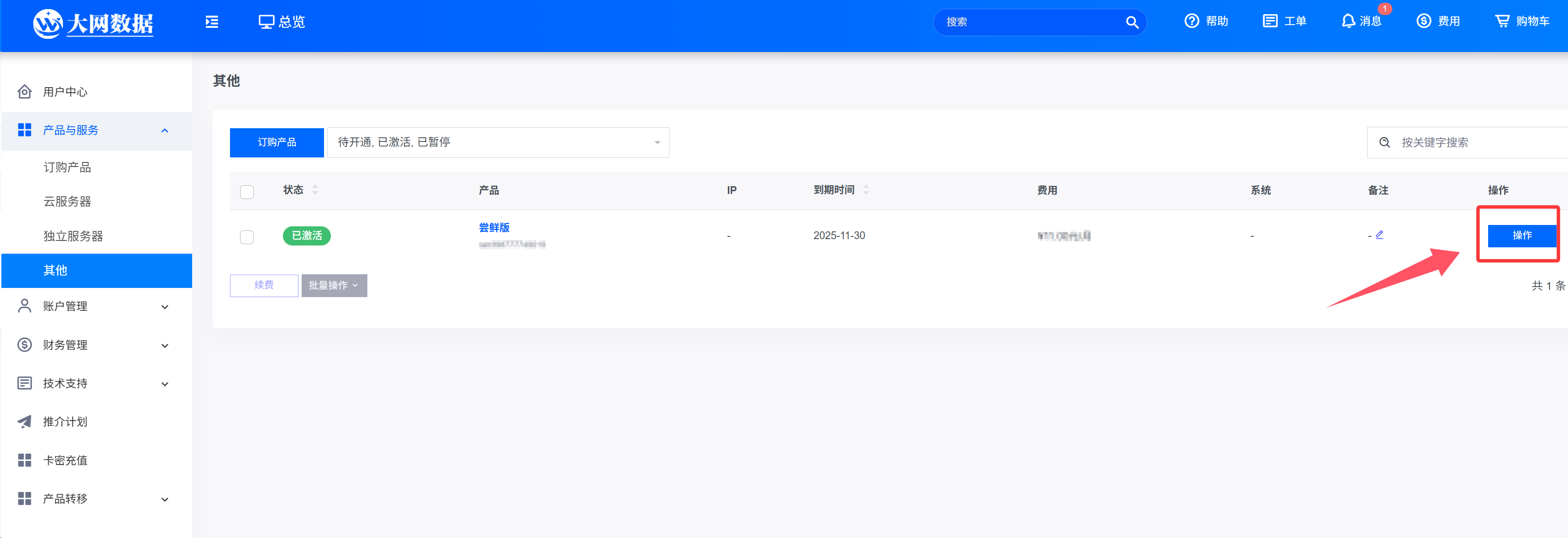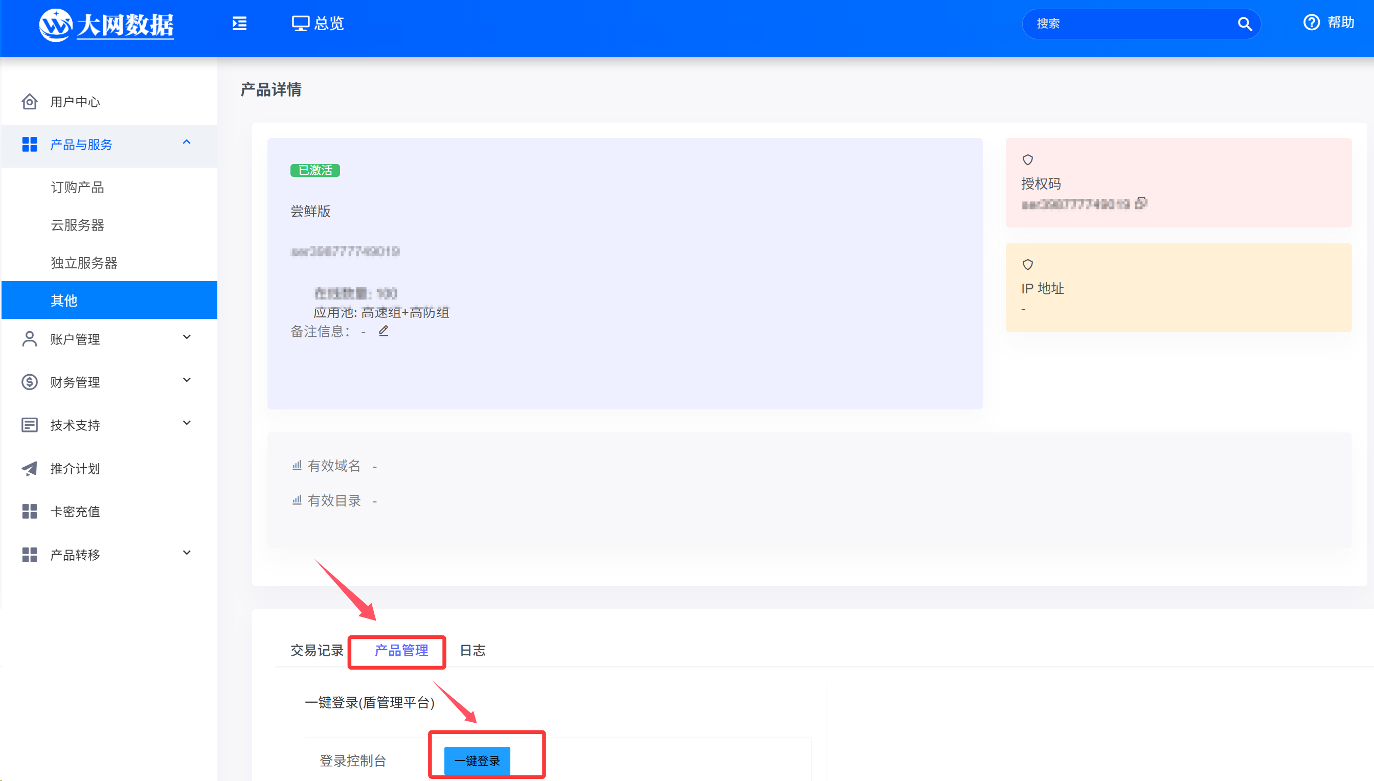 登陆个人中心,找到产品与服务下其他分类,然后找到购买的盾产品,选择产品下面的产品管理,然后一键登陆控制台(来源于互联网资料整理)